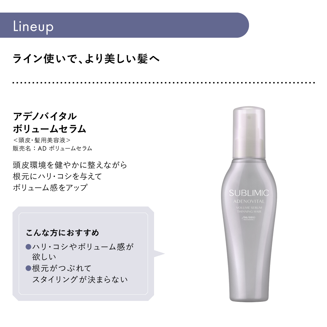 頭皮・髪用美容液週年齢による複合的な髪と頭皮の悩みに着目。頭皮、根元、毛髪の3方向からケアし、ハリ・コシ、ボリューム感のある美しい髪へと導きます。