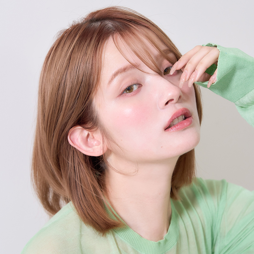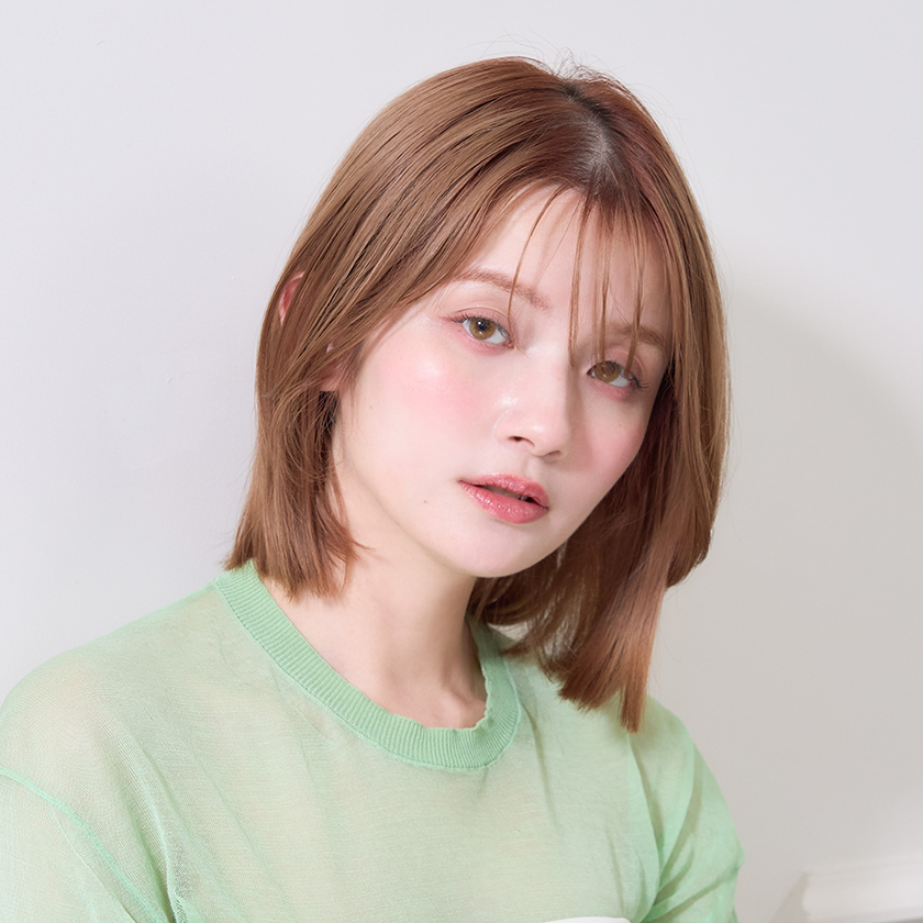 顔周りと表面にレイヤーの入ったボブスタイル。表面のレイヤーが軽さを感じさせます。ハイトーンのカラーを合わせるとより軽さが際立つ魅力的なスタイルに♪メイクは赤みピンクでドーリーな印象に♪ ヘア 大久保洸哉(新丸ビル店) メイク 鄧 秋蓉(シセイドウパサージュボーテ)