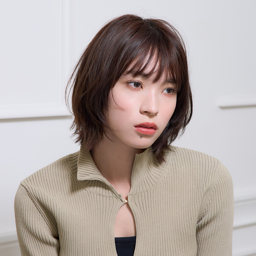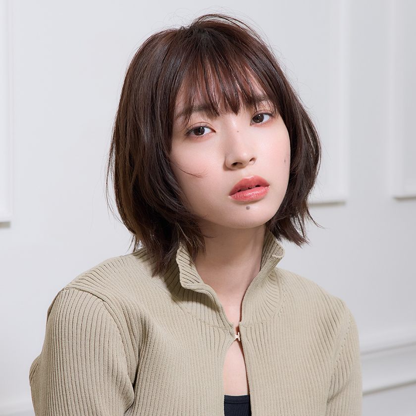毛先をハネさせたウルフ風スタイリングが魅力的なグラデーションボブスタイル。カジュアルさがありつつ、厚みや重みがモードな印象も与えてくれます◎ リップと下まぶたのアイカラーをリンクさせた秋メイクで大人キレイに✨ ヘア 大久保洸哉(ビューティー チューン 資生堂 日本橋高島屋S.C.店) メイク 鄧 秋蓉(シセイドウパサージュボーテ)