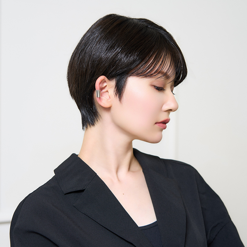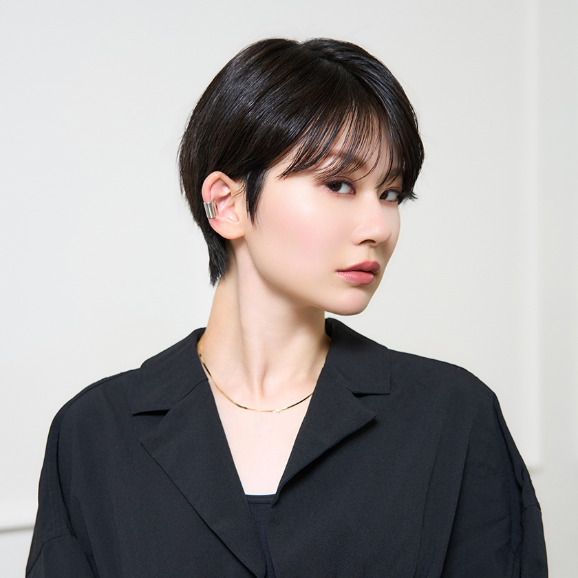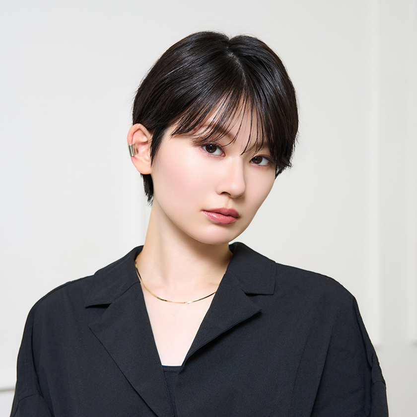シアーな印象のスッキリショート。耳掛けとつや感がでるオイルの効果でコンパクトにまとめて大人キレイに✨ グレイッシュなアイカラーで凛としたイメージに。 ヘア 川北 亮介(資生堂 サロン&スパ 大阪) メイク 鄧 秋蓉(シセイドウパサージュボーテ)