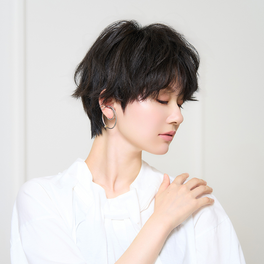 ラフな質感の大人ショートスタイル。暗髪でかっこよく甘すぎないのがポイント✨ 下まぶたのゴールドラメのきらめきで、透明感をアップしました。 ヘア 川北 亮介(資生堂 サロン&スパ 大阪) メイク 鄧 秋蓉(シセイドウパサージュボーテ)