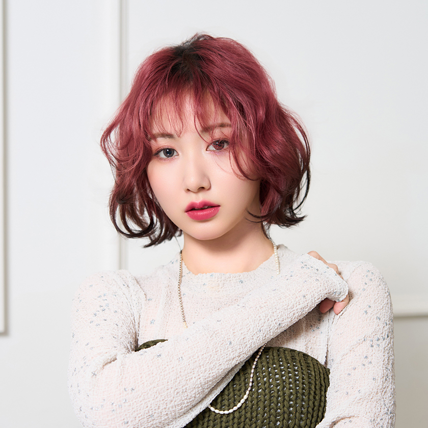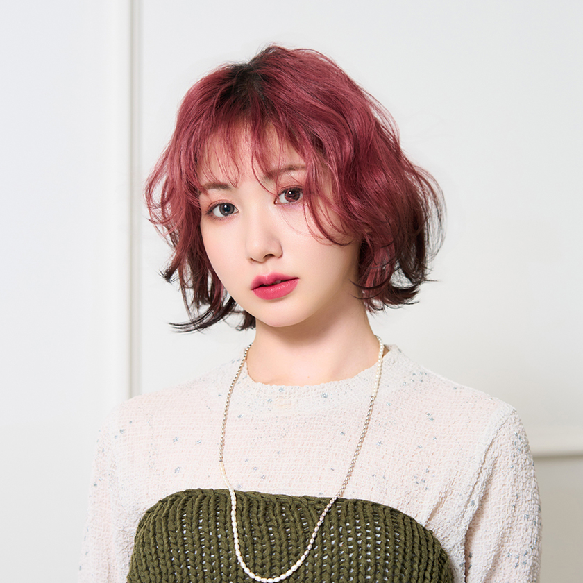 ボルドーカラー×ふんわりパーマ風