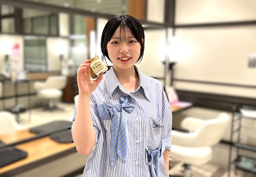 母が介護系の仕事をしているので身近に感じていました。認知症の方と関わる機会があり、日常生活が困難でもヘアを整えたりやメイクしたりとおしゃれを楽しんでいる姿を見て、美容の力を感じたんです! 私も自分の技術で人を笑顔にしたいと思っています。