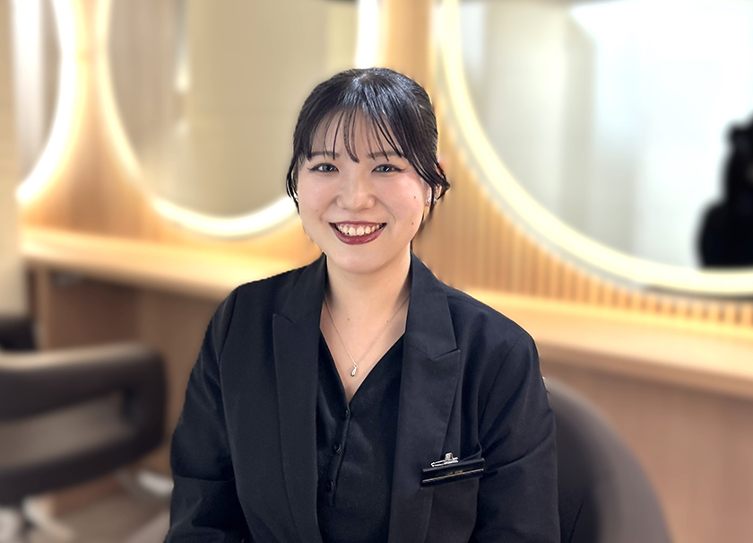 「私は会社説明会で話を聞いたのがきっかけでした。資生堂美容室って、ヘアだけじゃなくてメイクも着付けもできる人が多いイメージがあって。『全部できるようになったら、美容の仕事ってもっと楽しくなりそうだな』って思ったんです。正直、ハイトーンカラーが得意なサロンと迷ってはいたんですけど、比べたときにブランド力とか待遇面で安心感があって。長く働くならここだなって思って決めました。」