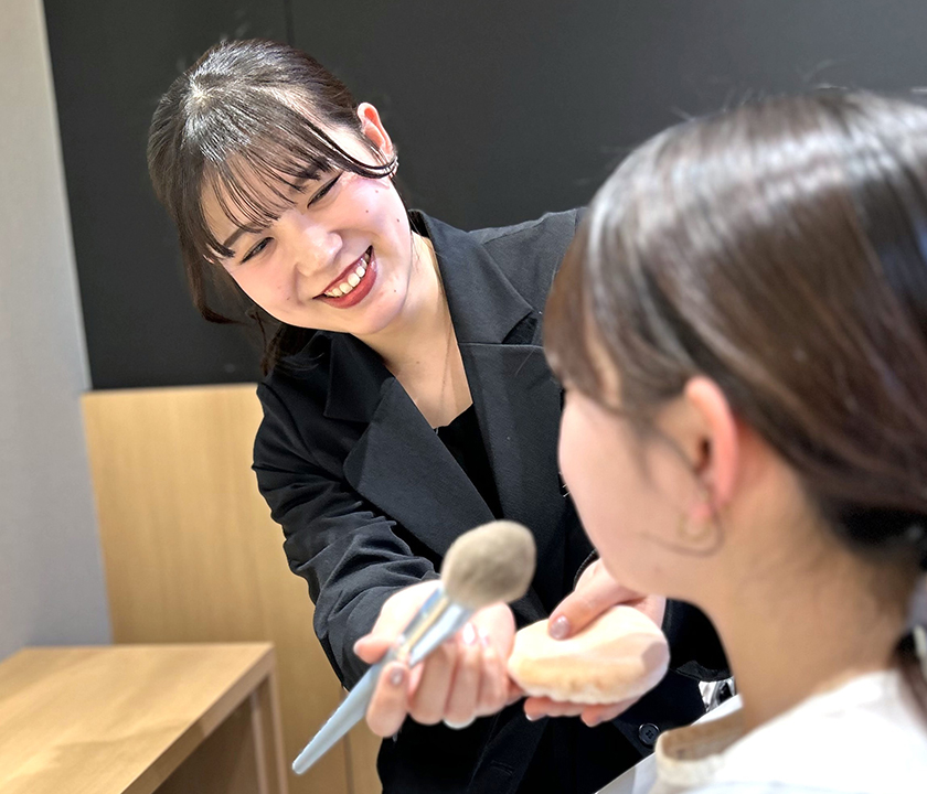 スタッフの皆さんの人間力が高いんです! お客さま一人ひとりに合わせた心遣いは本当に素晴らしくて私の目標でもあります。また七五三や成人式、卒業式など催事に関わることが多いデパートに入居しているのでヘアメイクや着付けができる環境だということも魅力です。いつかは担当できるようになりたいと思っています。
